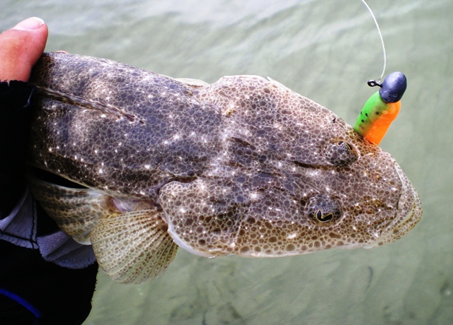 Small Flathead on a Lime Tiger soft plastic