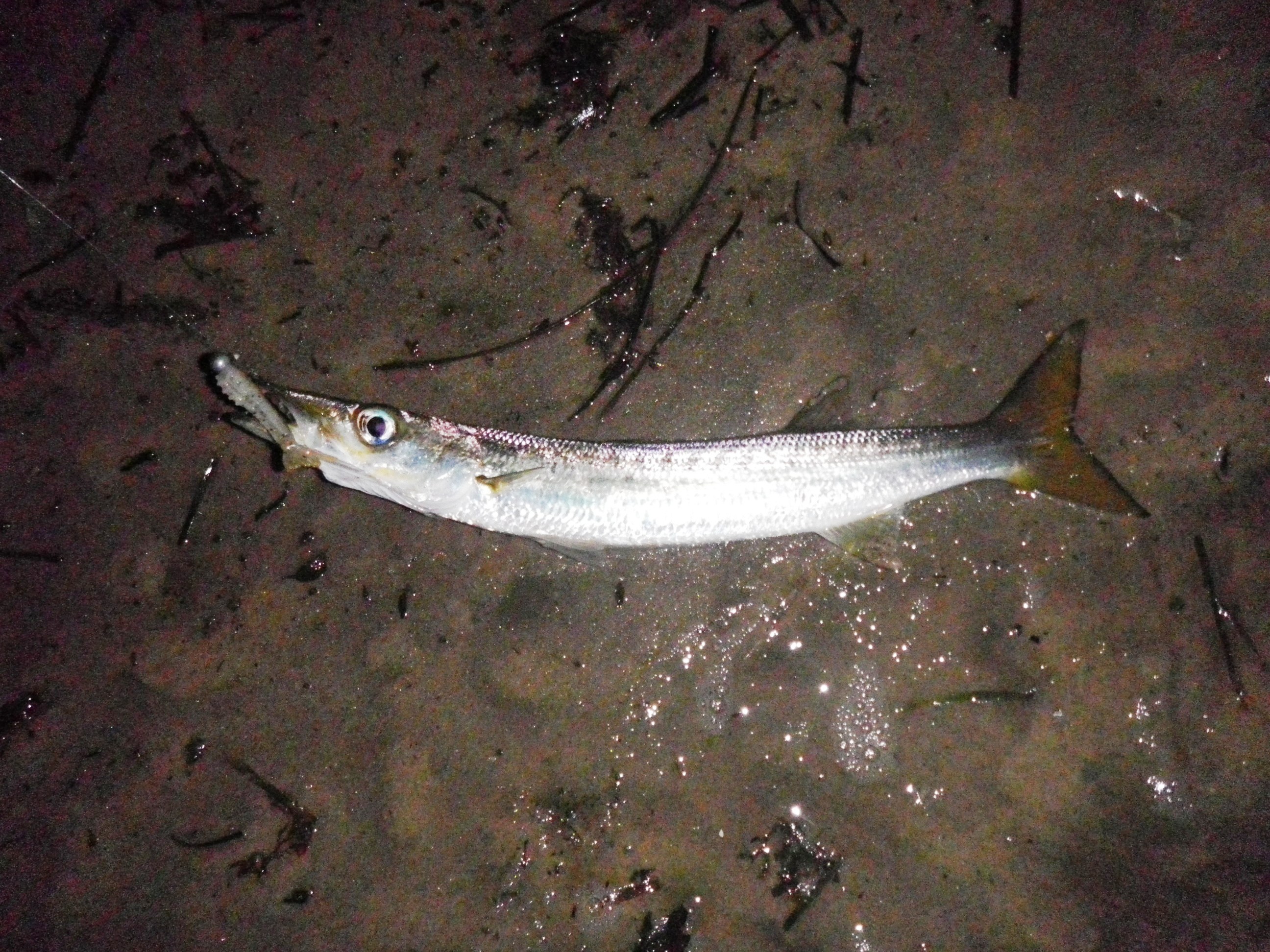 The bridge lights had attracted the prawns, and they had attracted the Pike and a few small chopper Tailor. We cast either side of the bridge for about 45 minutes. I hooked up with a few Pike, but could not find anything bigger. The other fisherman had found a couple of Flathead earlier and then been busted off.