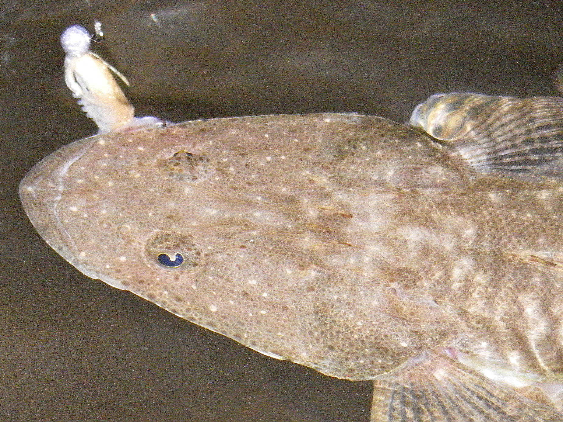A tiny flathead grabs the GULP shrimp