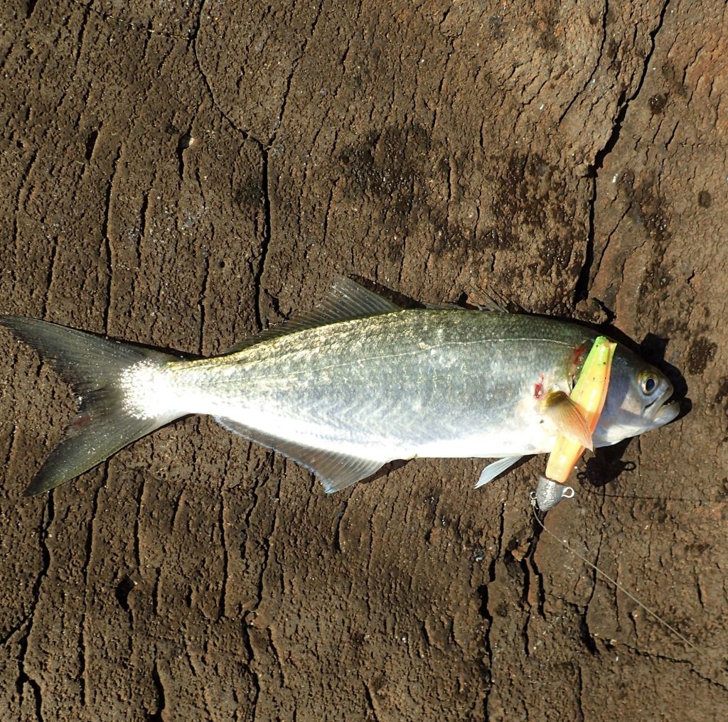 Again I was targeting the jewfish/ mulloway but I caught an assortment of species. I started with a few small tailor from the river side of the wall. Tailor will nearly always smash a soft plastic if it is right in front of them. I think the dolphins were also targeting them.