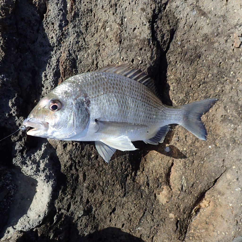 The fish I had caught so far were pretty small, so at about 8.40 am I dropped down to my lighter rock fishing setup – Shimano Stella 4000 matched with a Daiwa Crossfire 1062, 30lb braid and a 16lb fluorocarbon leader. I tied on a 1/4 ounce size 2/0 hook jig head and loaded a 4″ GULP Minnow soft plastic in the Camo colour. The first taker was another small tailor, very close to the base of the front of the rock wall. I kept casting and had a few more bites then lost two jigheads in a row to the rocks. I re-rigged and this time after a few casts I hooked a decent fish. It was a school jewfish, about 60 cm long and I managed to haul it carefully up to my feet, photograph it and throw it back.
