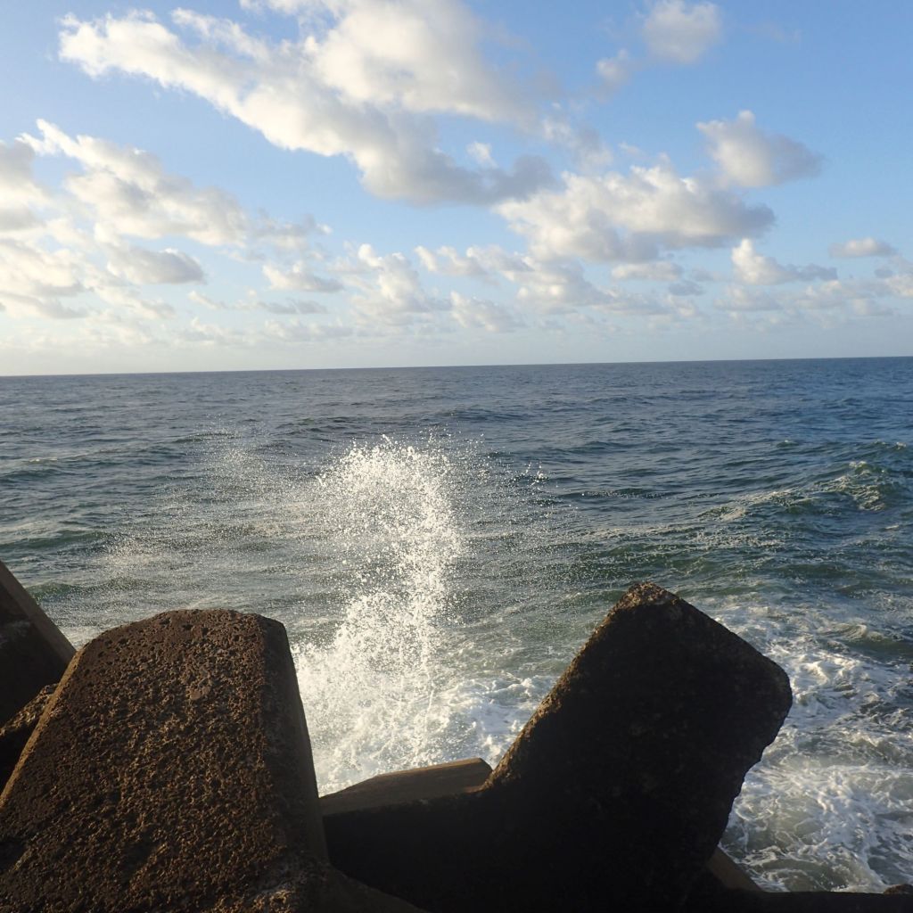 The swell was lighter than I had expected so I moved round to the very end of the wall and cast to the east. It is amazing how over just one year the huge concrete tripod shapes have gradually broken down and slipped forward, from the relentless wave action. Some have even been broken in half.
