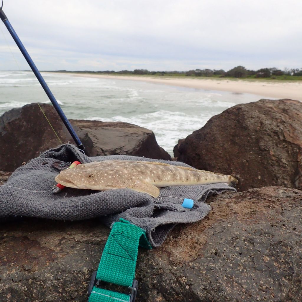 I had a few sessions around the mouth of the river and caught a few small flathead on minnow soft plastics. On a couple of sessions I trekked up river on the south bank and caught plenty more small flathead. The star performer was the GULP Pulseworm soft plastic in various beige/ camo colours.
