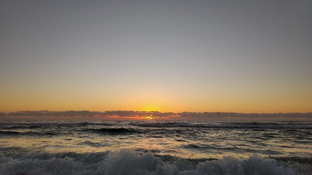 I arrived before first light and walked for 35 minutes to reach the end of the rock wall and started fishing just after dawn. There was a clear line where the brown water from the river was pushing out against the clearer blue green water of the ocean, pushing in.