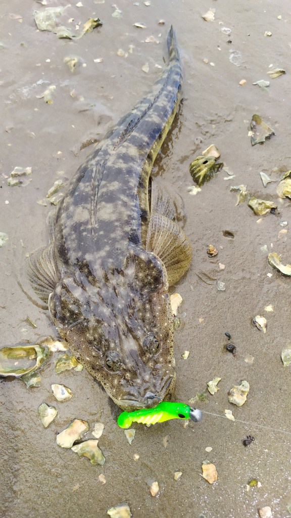 The river was fishing well and running fairly clear. I caught a few flathead and flounder in the shallows in between the rock fishing sessions.